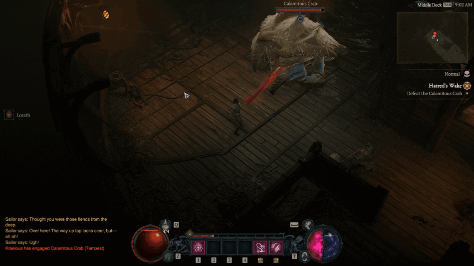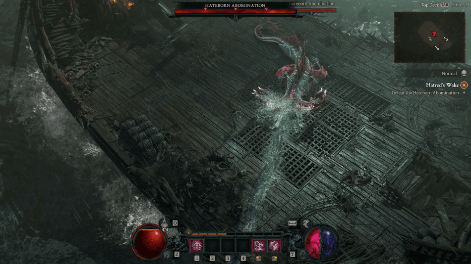 Upon reaching the back of the ship, a Calamitous Crab will break in from the side of the hull, and you will need to defeat it.