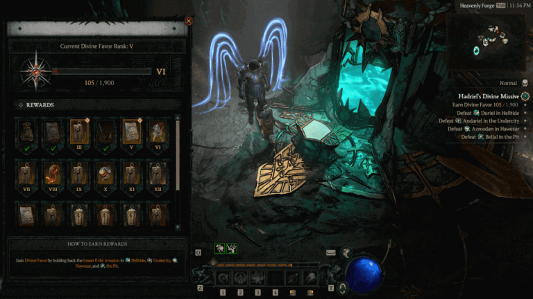 Divine Favor is the Seasonal Reputation for Season 11: Divine Intervention, which is gained as you continue to progress through the season. This Seasonal Reputation must be farmed to claim Divine Favor Rewards, which become available depending on the ranks that you reach. Divine Favor can be obtained in different amounts, and this depends on … Continue reading Diablo 4: Divine Favor (How To Get & Rank Rewards)