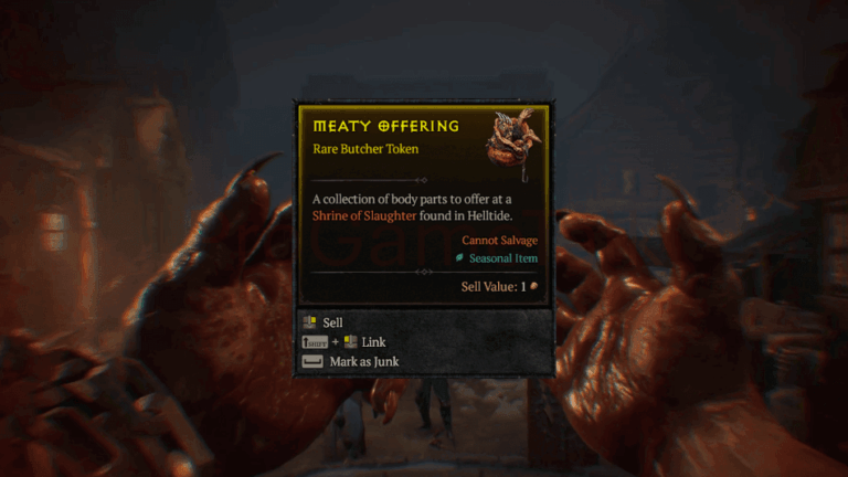 Meaty Offerings in Diablo 4 Season 12 are a seasonal item used to activate Shrines of Slaughter, drawing large groups of enemies for faster combat and better rewards. They are earned automatically as you defeat enemies and complete activities during Helltides, Slaughterhouse runs, and other combat‑heavy content where enemy density is high. Understanding where and … Continue reading Diablo 4: Meaty Offerings (How To Get & Uses)