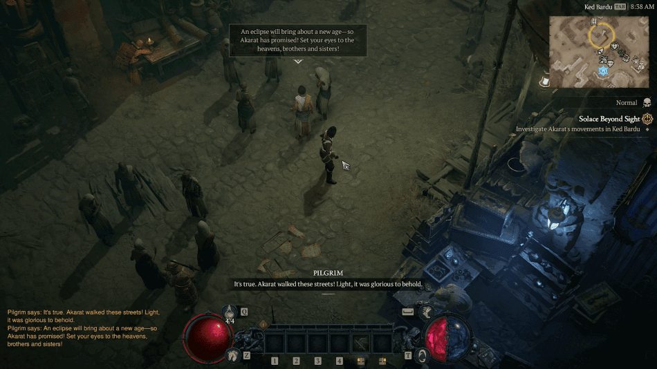 Start by making your way to the marked area, where you will find Lorath being spoken to by one of the Pilgrims in Ked Bardu.