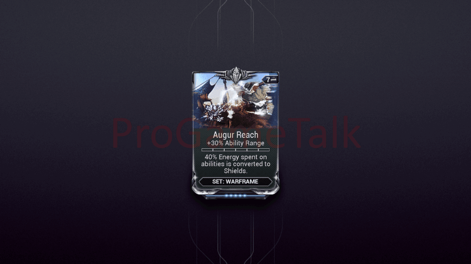 Augur Reach is part of the Augur mod set, which converts a portion of energy spent on abilities into shields whenever you cast.