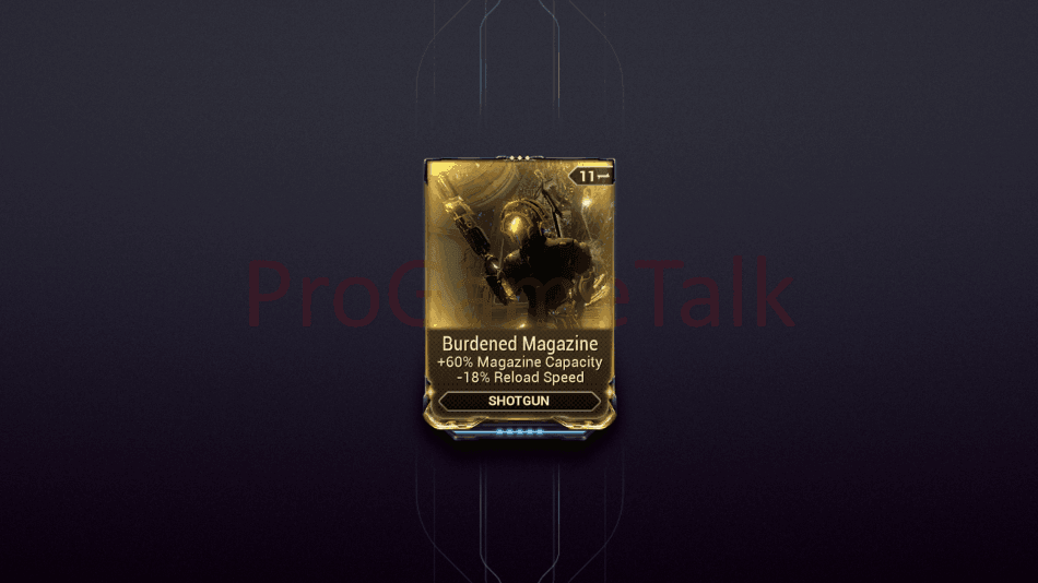 Burdened Magazine increases magazine capacity, giving more shots per reload which helps maintain damage output without constant interruptions during fights.